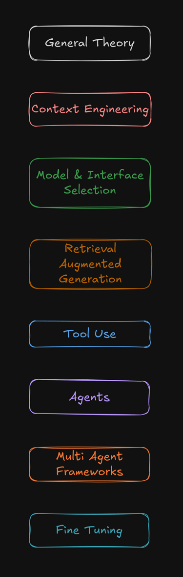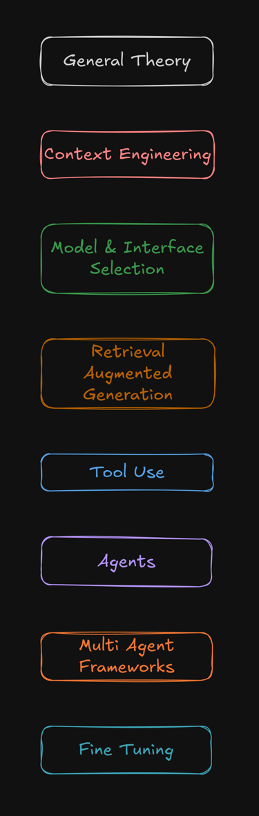 Our structured approach supports individuals in developing a robust understanding through a clear learning path, starting from first principles and progressing step by step. From understanding how these AI systems are made and function, we guide you through practices like context engineering and then more advanced techniques like retrieval augmented generation and creating agent-based frameworks.